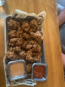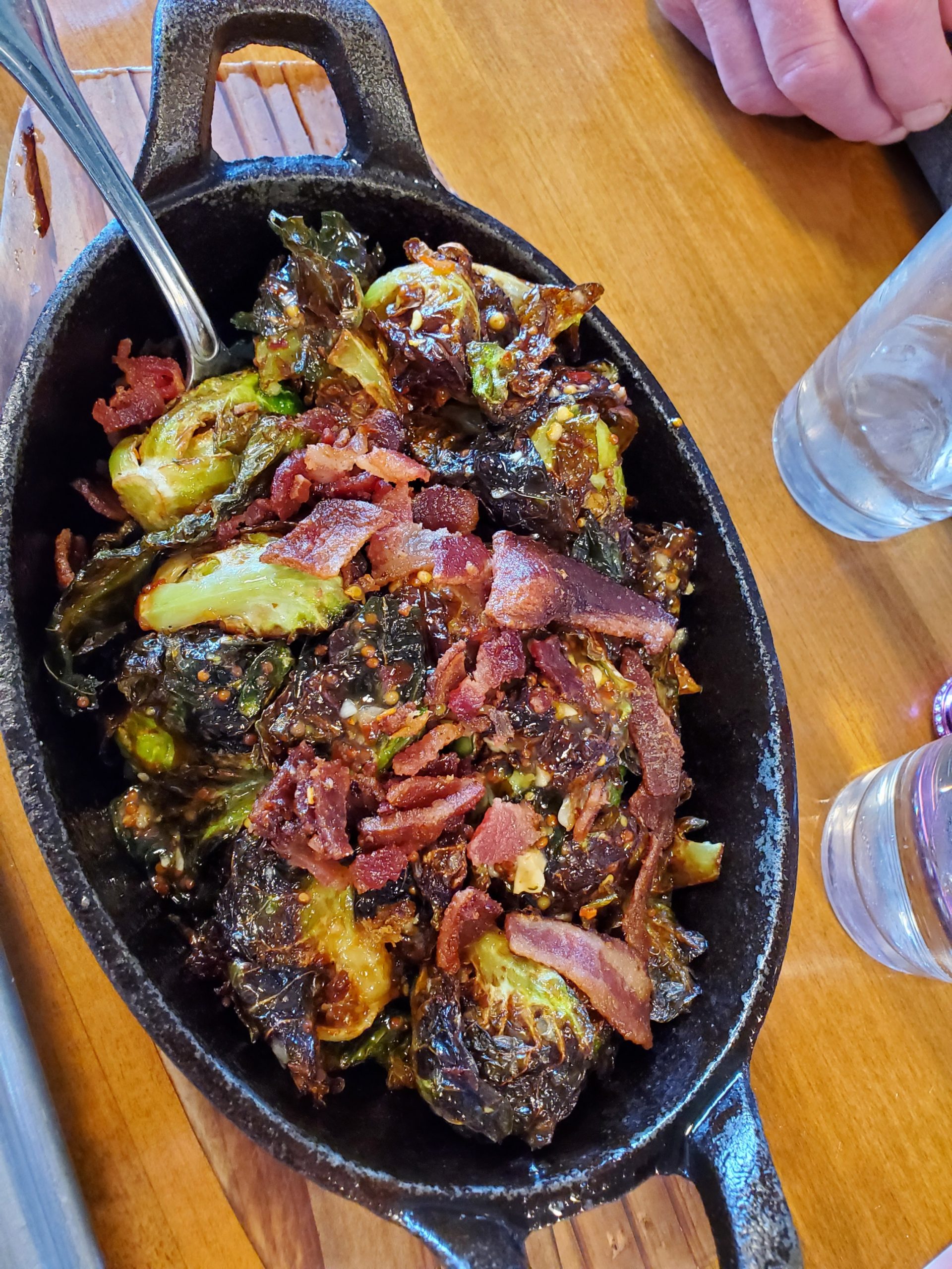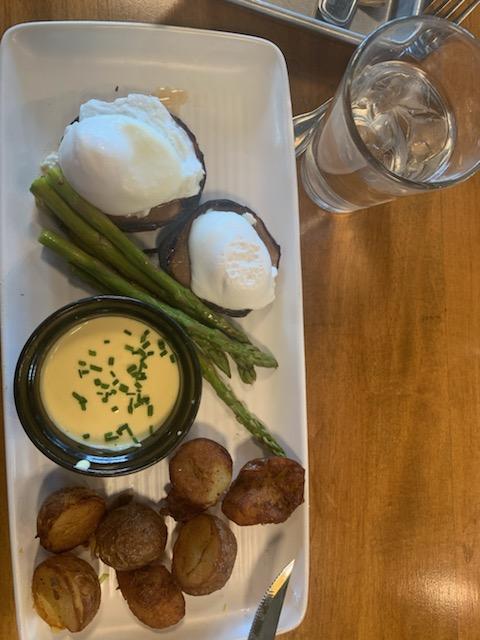 Everyone ordered different things to eat which was fun so we could all try them out. We ordered the Crispy Brussel Sprouts with a Maple Glaze, along with the Maple Bacon Donuts first. Both were amazing! For brunch, I chose the Keto Porto-Benedict. It was made with a portobello cap instead of a biscuit. NO CARBS!