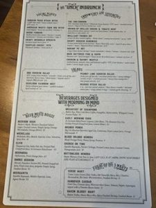 The brunch menu also had a variety of things to order and if you don’t like mimosas (which who wouldn’t)? The drink menu has everything from a “Beermosa” to a “Brunch Punch” with aged bourbon.