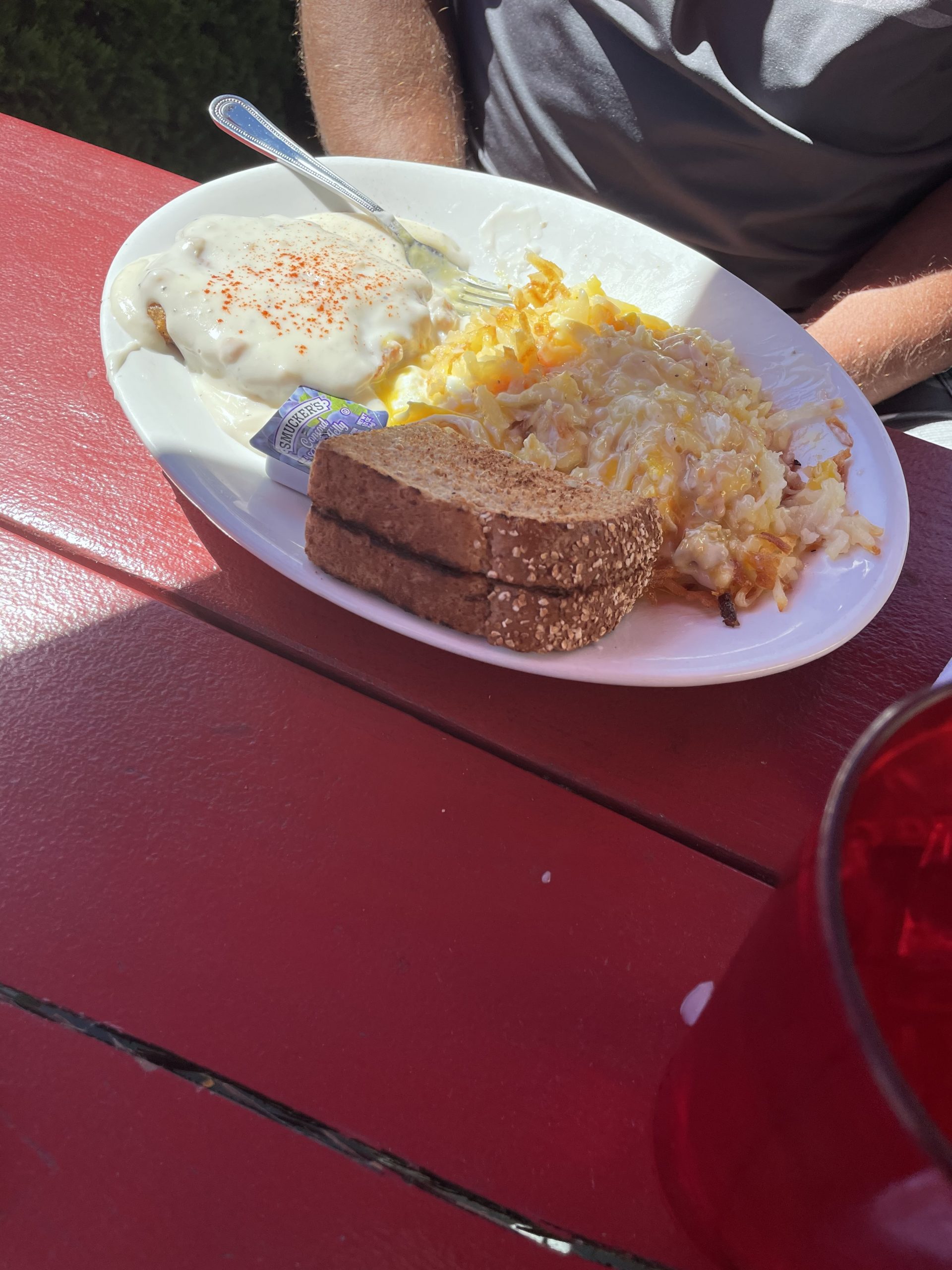 We arrived around 10am and decided that the patio would be perfect. The weather has been hot, but the morning was still cool enough to be outside.